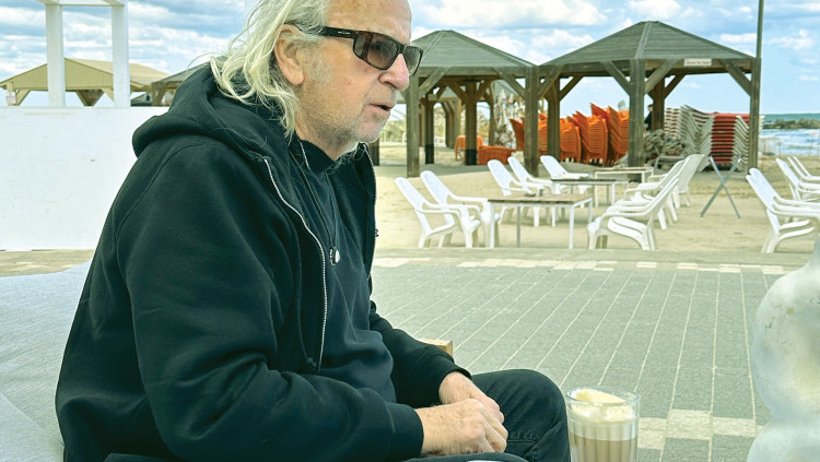 אני יושבת במרפסת מלון בטבריה, בזווית שמראה את הנקי ולא המלוכלך