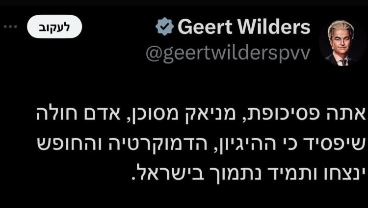 חרט ווילדרס לחמינאי: "אתה פסיכופת, מניאק מסוכן, אדם חולה – תמיד נתמוך בישראל"