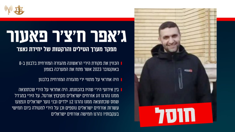 צה"ל: חוסל מפקד מערך הטילים והרקטות של יחידת 'נאצר' בחיזבאללה