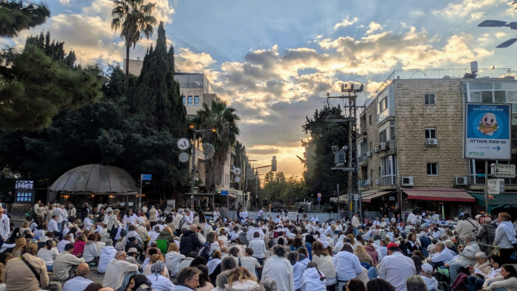 מחאת האימהות בלבן חוסמות כעת את הצומת הסמוך למעון ראש הממשלה בירושלים