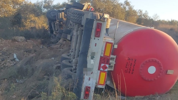 משאית המובילה 25 טון גז התהפכה בשומרון; לוחמי אש בודקים המצאות גז באוויר