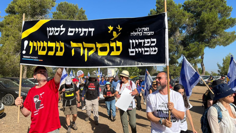 אל צעדת משפחות החטופים לכיוון ירושלים הצטרפו עשרות פעילים מהמגזר הדתי ביוזמת "השמאל האמוני"
