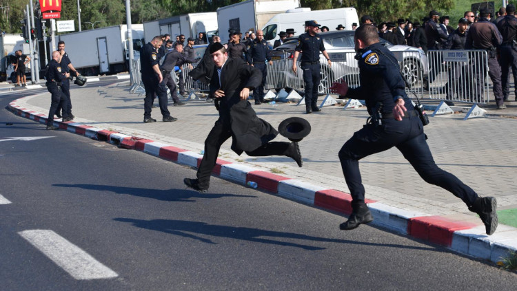 עימותים בהפגנה בתל השומר בעקבות גיוס החרדים, צלם "מעריב" הותקף