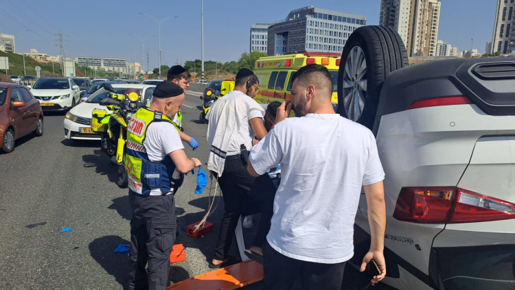 רכב של גבר בן 81 התהפך בתאונת דרכים סמוך לקריית אונו, מצבו בינוני