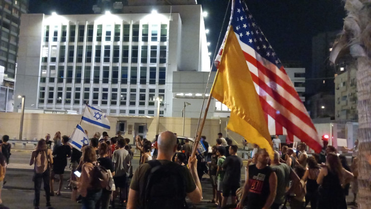 המפגינים צעדו לשגרירות ארה"ב בישראל, וחסמו את רציף הרברט סמואל בתל אביב