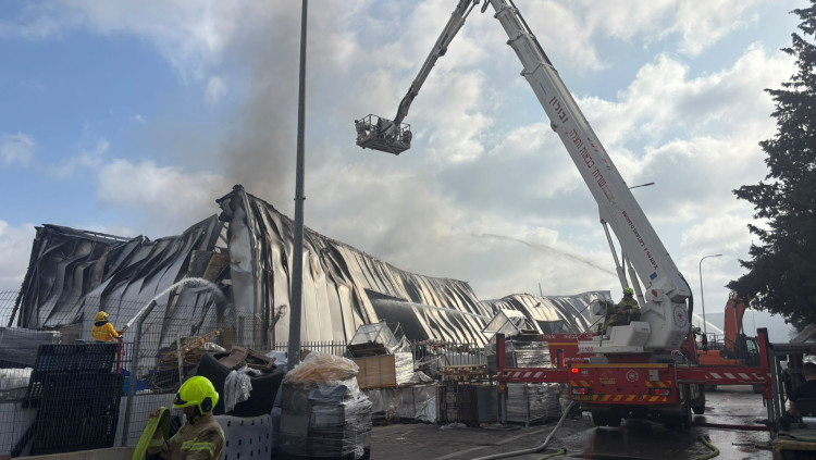 מפעל לייצור בצקים בצפון נשרף והחל לקרוס; 13 צוותי כיבוי במקום