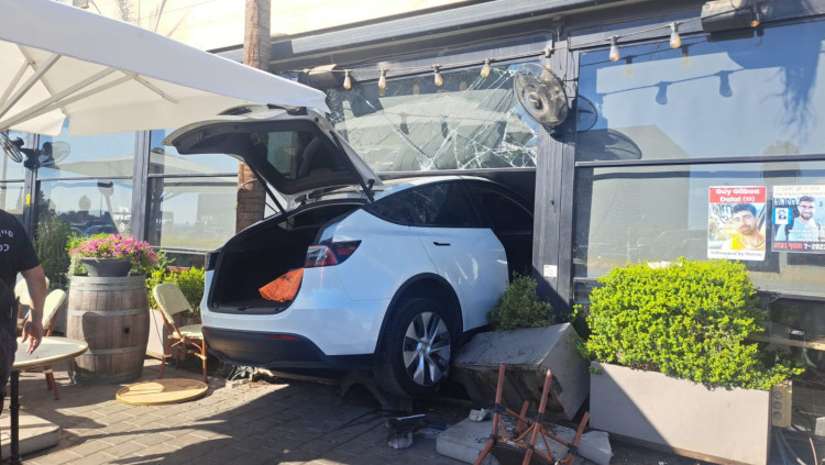 דיווח ראשוני: רכב התנגש בבית קפה בכפר סבא, מספר נפגעים במקום