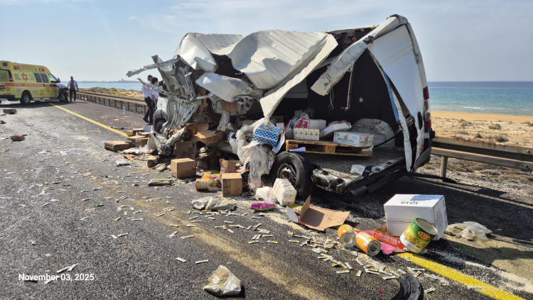 אדם בן 22 נפצע באורח בינוני בתאונת דרכים בין משאית לרכב מסחרי בכביש 2 סמוך למגדים
