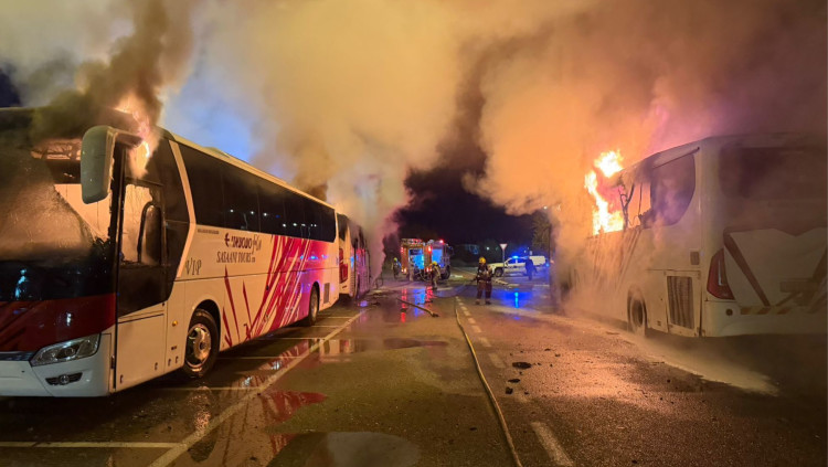 במהלך הלילה: שלושה אוטובוסים נשרפו בחניון סטופ מרקט בצומת יגור