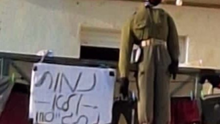 בובה לבושה במדי צה"ל לצד הכיתוב "נמות לא נתגייס", נתלתה בבית שמש