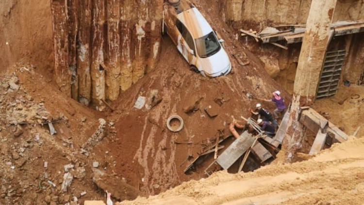 חלק מבנה קרס באתר בנייה ברמת גן, פועל לכוד במקום