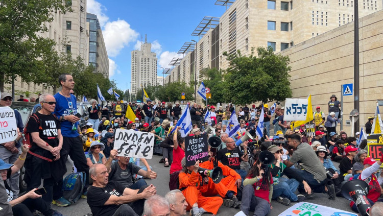 מפגינים חוסמים כבישים סמוך למשרדי הממשלה והכנסת