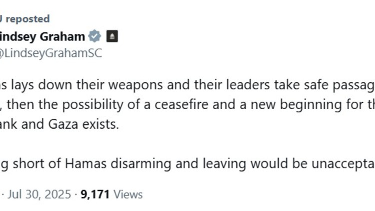 לינדזי גרהאם: "כל דבר פחות מפירוק חמאס מנשקו ויציאתו יהיה בלתי מקובל"