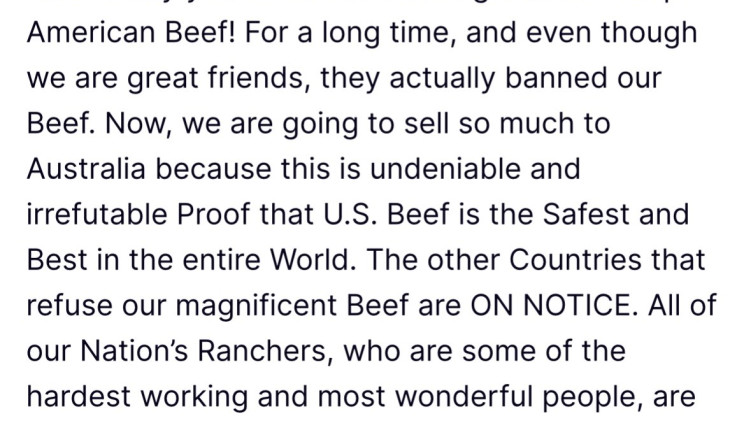 טראמפ: "ארה"ב תתחיל למכור בשר לאוסטרליה - שאר המדינות שמחרימות עוד ברשימה"