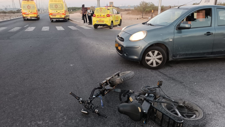 רוכב אופניים חשמליים בן 19 נפצע באורח בינוני לאחר שנפגע מרכב בכביש 4 סמוך לצומת פל ים