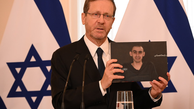 הנשיא הרצוג מציג את תמונות החטופים בלטביה: "העולם חייב לנקוט עמדה"