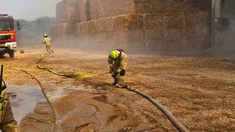 שריפה פרצה במתבן בקיבוץ רגבה, כ-600 טון קש בסכנה; כבאות והצלה נמצאים במקום