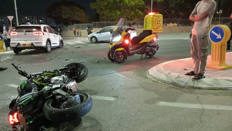 רוכב אופנוע בן כ-25 נפצע קשה בתאונת דרכים עם רכב באשקלון, 2 נוסעות הרכב נפצעו קל