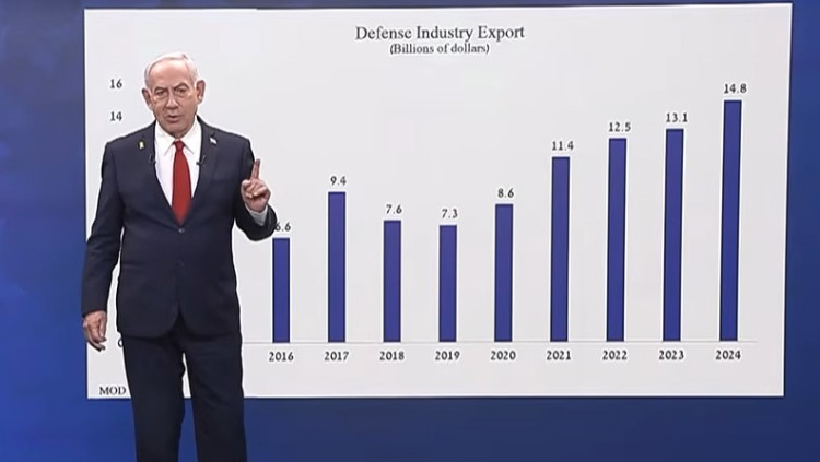 במהלך מסיבת העיתונאים - נתניהו לא מוכן להשיב לשאלה אם נפסיק למכור נשק למי שמטיל סנקציות