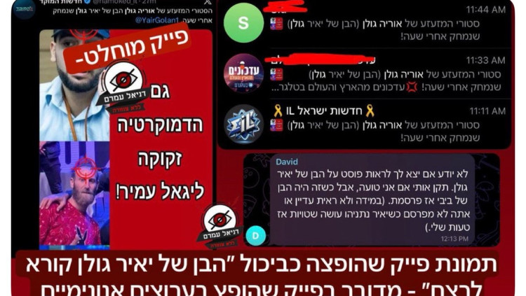 יאיר גולן: הופץ פייק מתועב על הבן שלי - בריונים חיכו מחוץ לבית