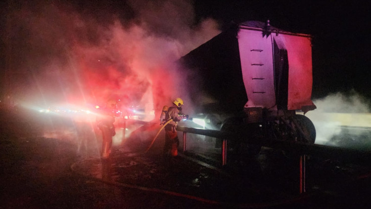 עגלת משאית עלתה באש סמוך למחלף אור עקיבא, אין נפגעים