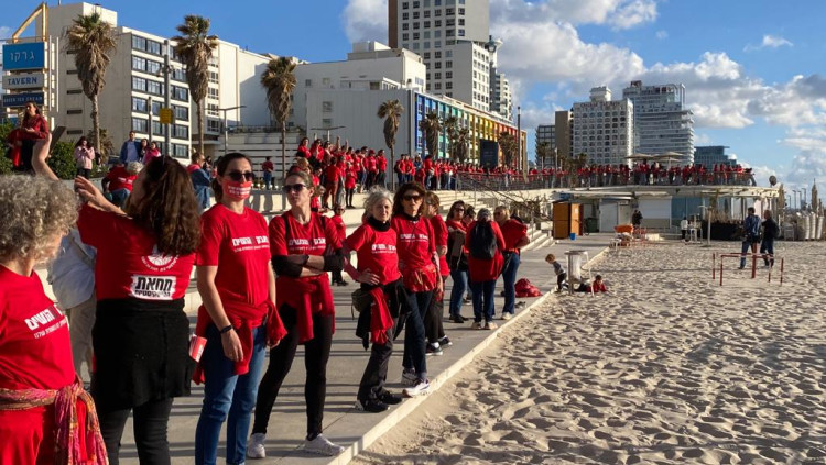 לבושות באדום ומשלבות ידיים: אלפי נשים בשרשרת מחאה אנושית