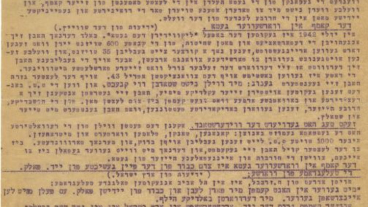 "לא נמות כמו עבדים": עדות מוקדמת על מרד גטו ורשה הודפסה במחתרת