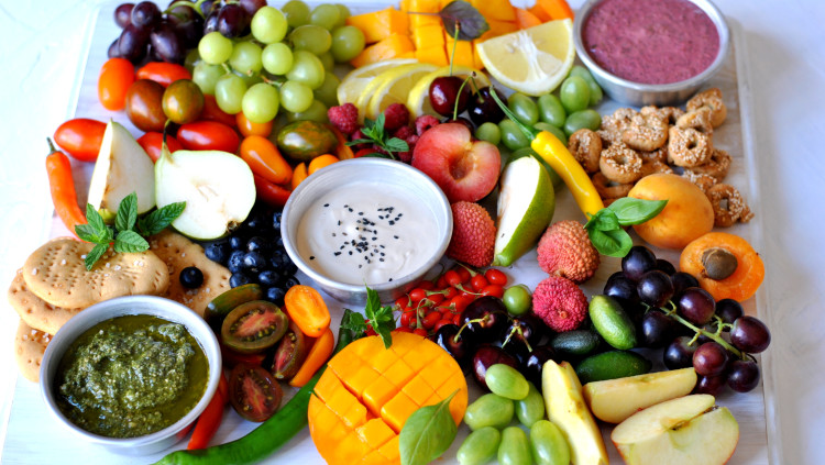 קרקרים, מטבלים ושפע של פירות, ירקות ועשבי תיבול: כך נראית הארוחה המושלמת