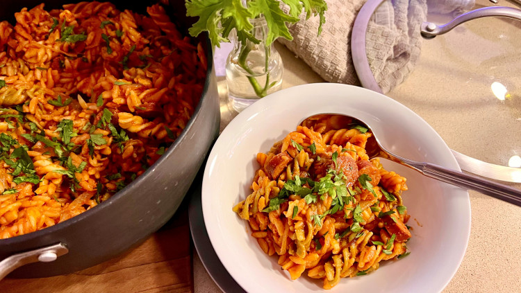 בסיר אחד: פסטה אדומה עם נקניקיות שילדים אוהבים | במטבח עם פסקל