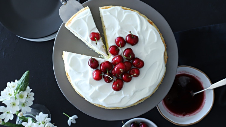 עוגת גבינה קלאסית עם טוויסט של דובדבנים