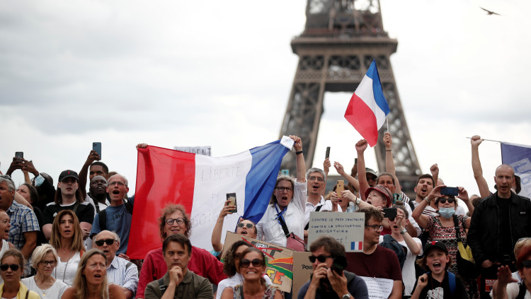 קוראים ל"חירות": עשרות אלפי אזרחי צרפת במחאה נגד הממשלה