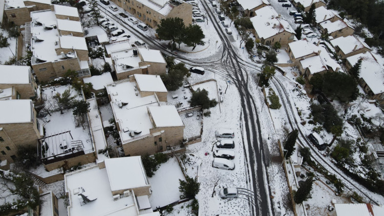 הסערה בעיצומה: שלג כבד יורד בירושלים, כביש 1 נסגר שוב לתנועה