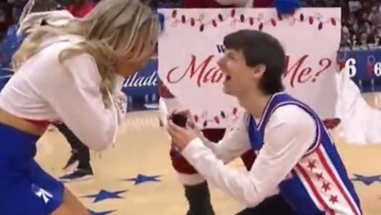 אוהד פילדלפיה סיקסרס מציע נישואים למעודדת בשידור חי, ונקטל על ידי המגיבים