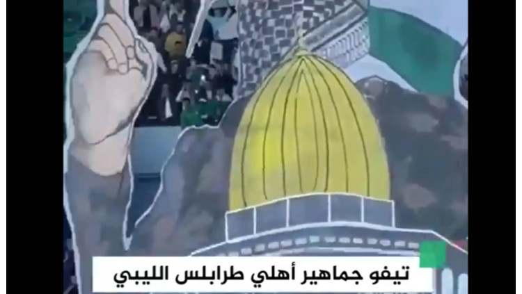 מיצג תמיכה בבכיר חמאס אבו עוביידה במשחק כדורגל בלוב