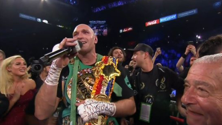 צפו בטייסון פיורי חוגג את הניצחון הגדול בשירה עם הקהל