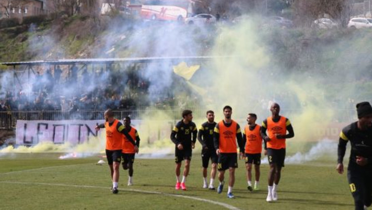 אבוקות, שלטים ורימונים באימון בית"ר לקראת הפועל ת"א