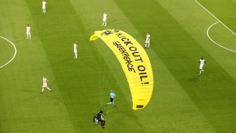 צפו: פעיל "גרינפיס" צנח לכר הדשא שניות לפני גרמניה – צרפת