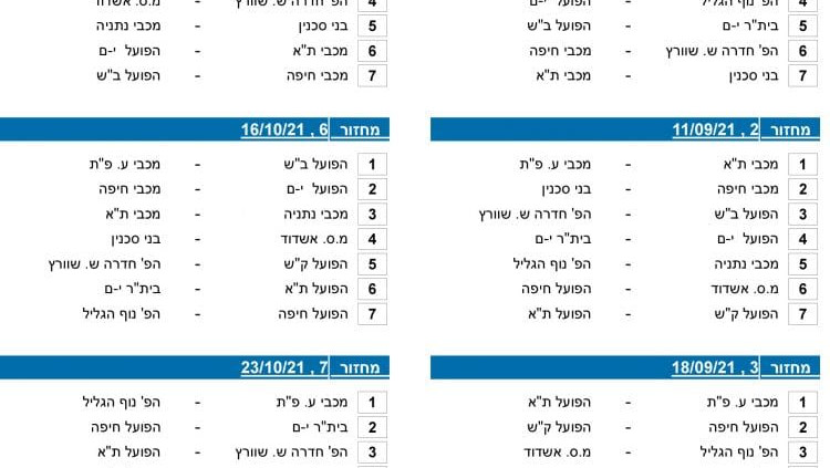 לגזור ולשמור: לוח המשחקים של הקבוצות הגדולות