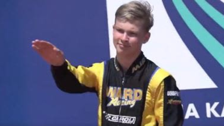 צפו: נהג רוסי ניצח במירוץ והצדיע במועל יד על ראש הפודיום