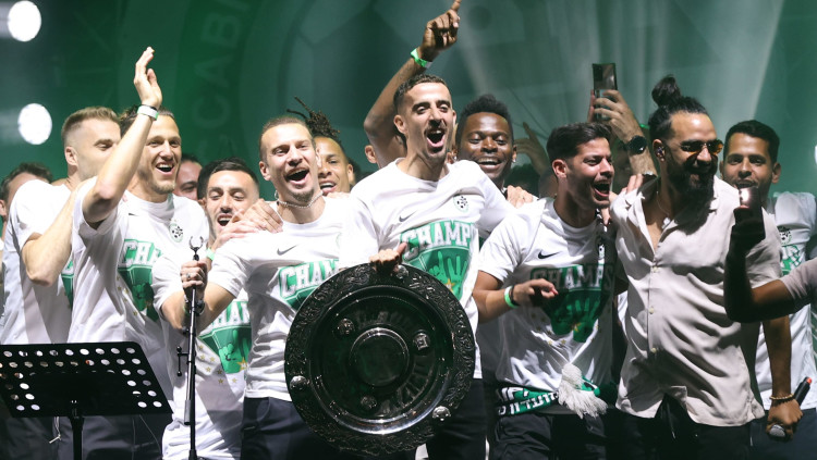 שחקני מכבי חיפה בחגיגות האליפות עם הזמר בניה ברבי