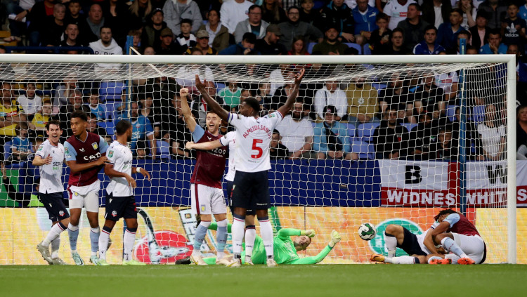 תקציר: שחקן אסטון וילה דגלאס לואיז כובש מבעיטת קרן במהלך משחק גביע הליגה מול בולטון