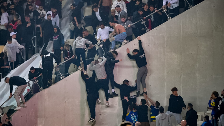 אוהדים של מכבי תל אביב פורצים משער 8 לשער 11 לפני הדרבי התל אביבי בבלומפילד