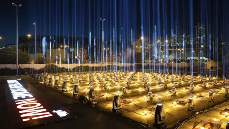 למען שחרור החטופים: 230 אלומות אור נישאות בשמי ירושלים
