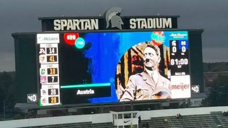 אחרי הרצח, בזמן המלחמה: תמונה של היטלר על מסכי הענק באצטדיון