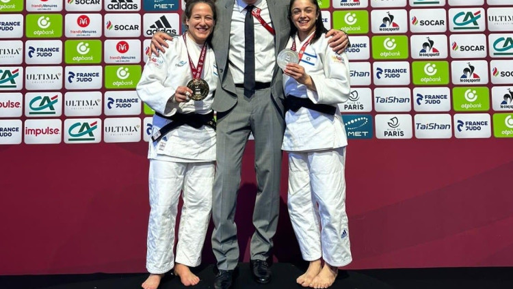 גילי שריר (שנייה משמאל) עם מדליית זהב, גרנד סלאם פריז בג'ודו