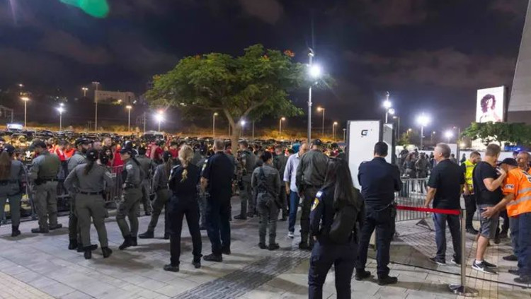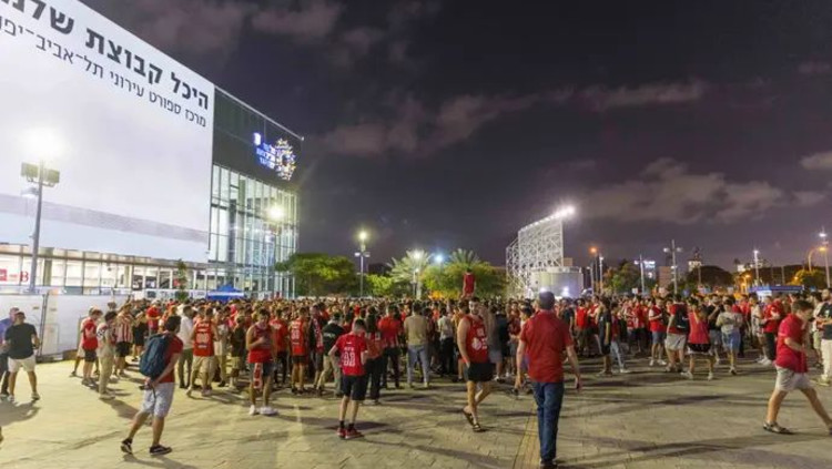 אוהדי הפועל תל אביב כדורסל מחוץ לאולם היכל קבוצת שלמה