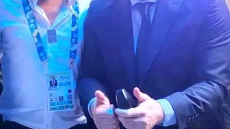 מימין לשמאל נשיא ארגנטינה חאבייר מיליי, אמיר פלד יו"ר מכבי תנועה עולנית