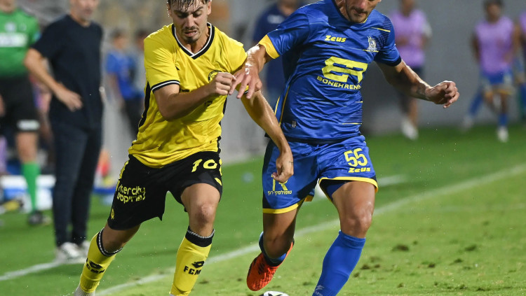 עוז בילו מכבי נתניה לצד רועי שוקרני מכבי בני ריינה