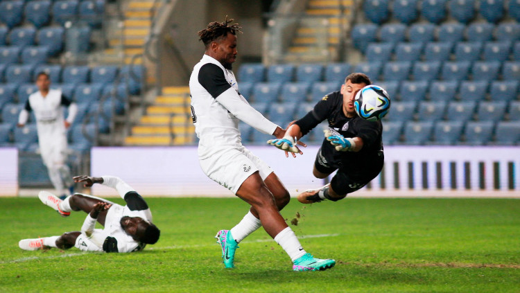 שחקן מ.ס. אשדוד אזקיאל הנטי מול שוער מכבי פתח תקוה מרקו וולף