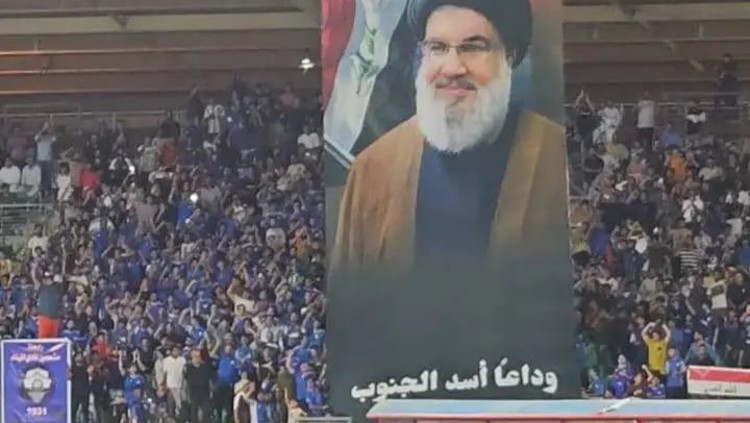 להיט חדש באיצטדיונים בעיראק: דגלי פריסה לזכר נסראללה